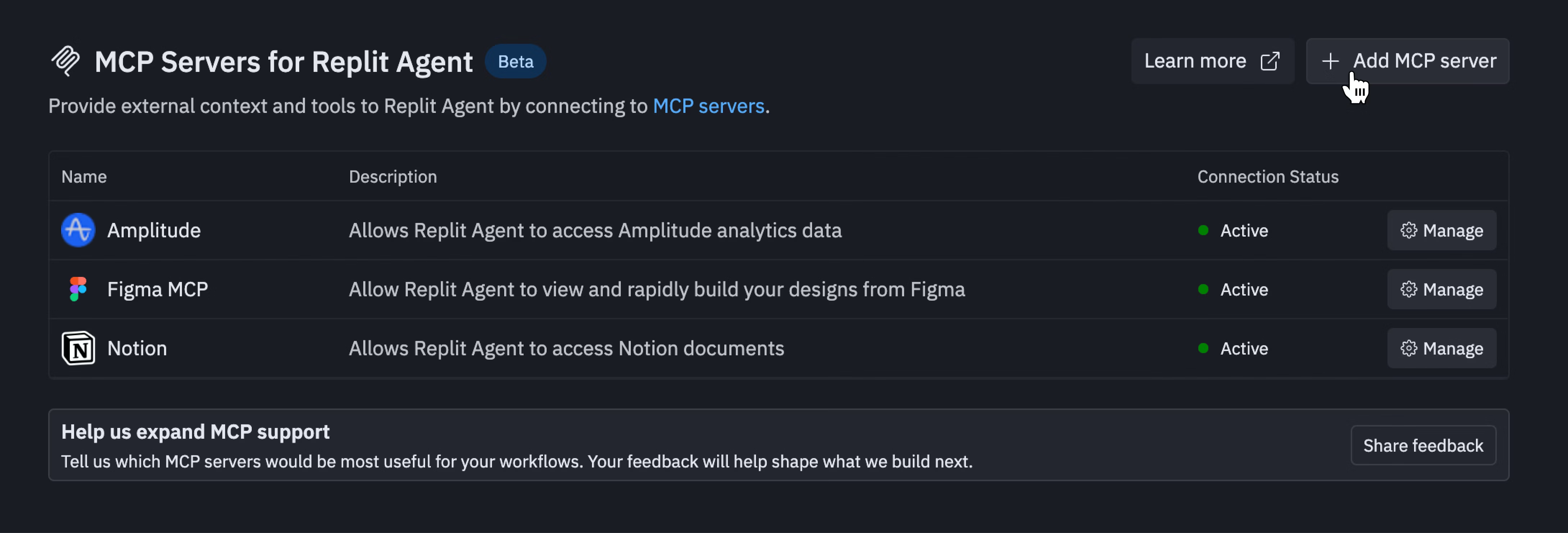 Agent can now connect to remote Model Context Protocol (MCP) servers, giving you access to new capabilities and tools with minimal setup. This unlocks the ability for Agent to call external tools and pull context from remote systems. With custom MCP servers, you can:- Connect to remote servers that pull context and take actions in external tools